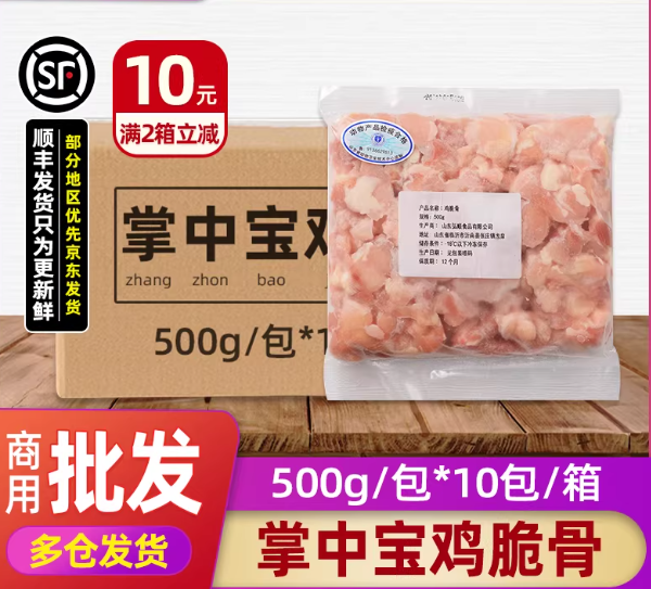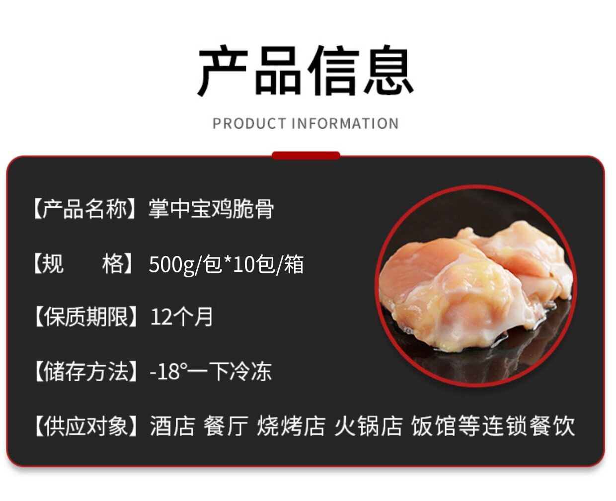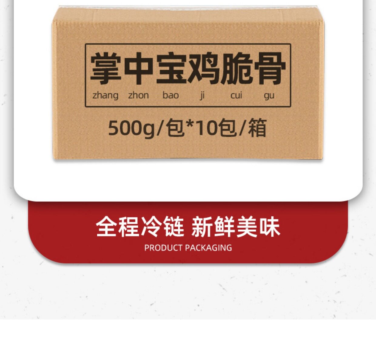 • 商品名称:整箱 掌中宝鸡脆骨生鲜冷冻鸡软骨烧烤串食材商用半成品500g*10包