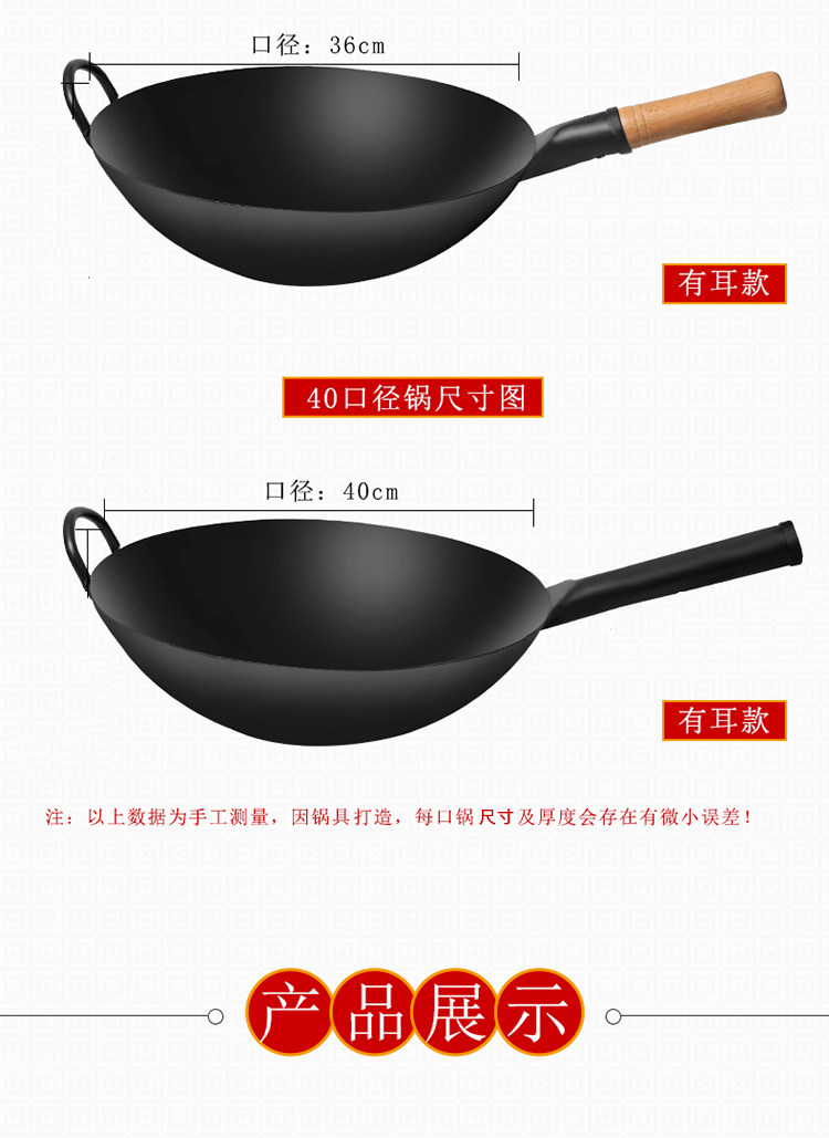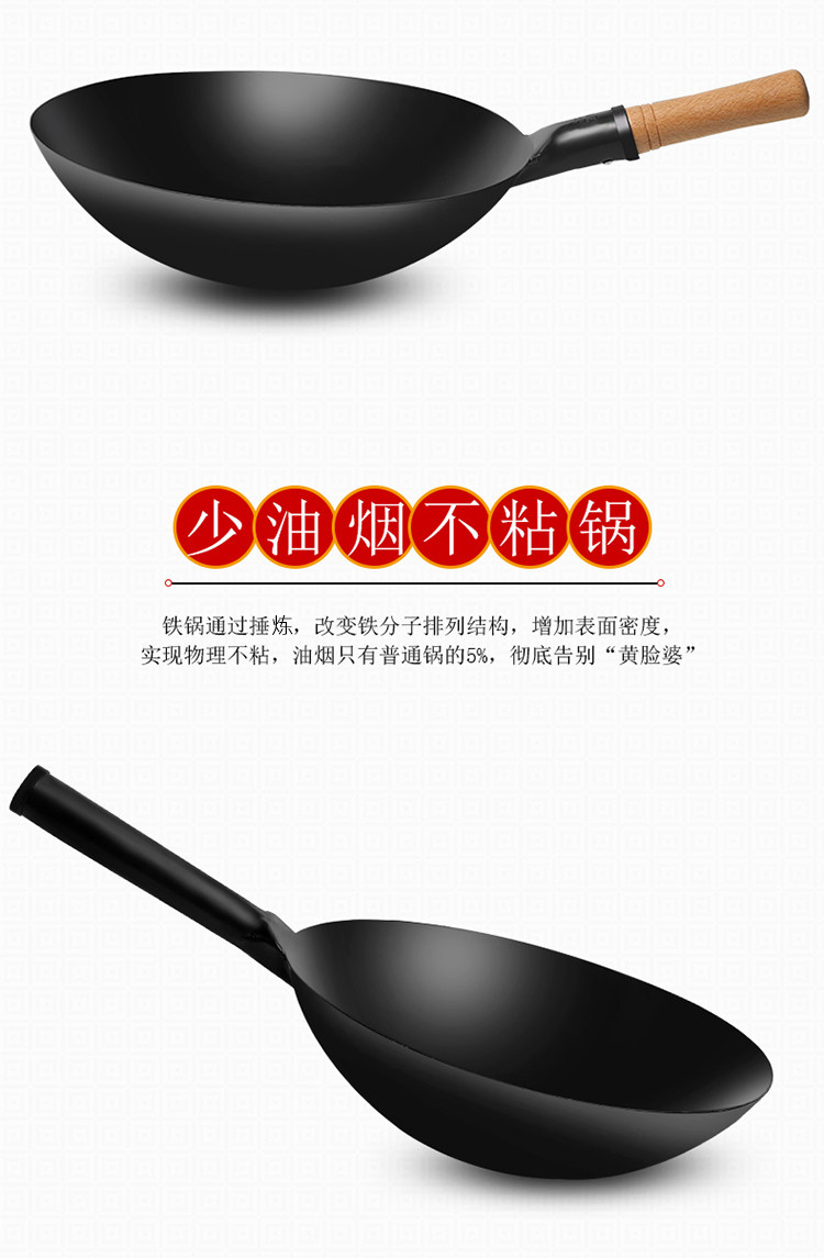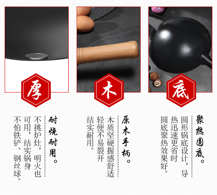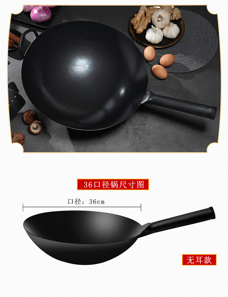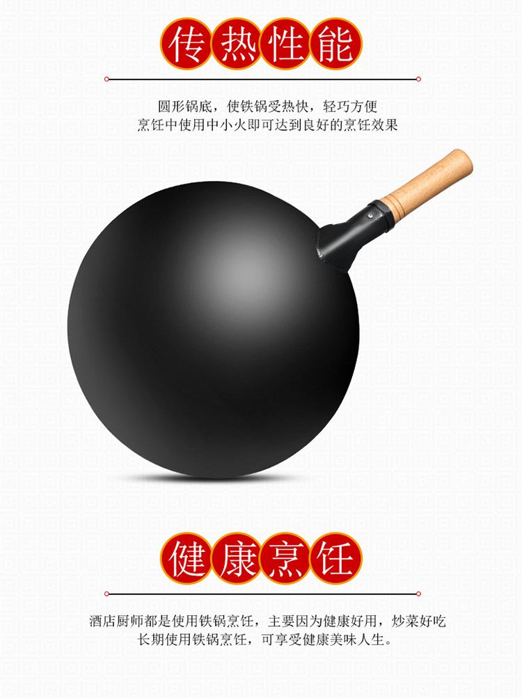 • 商品名称:老式铁锅炒锅商用煤气灶专用饭店厨师炒菜锅家用熟铁无涂层不粘锅